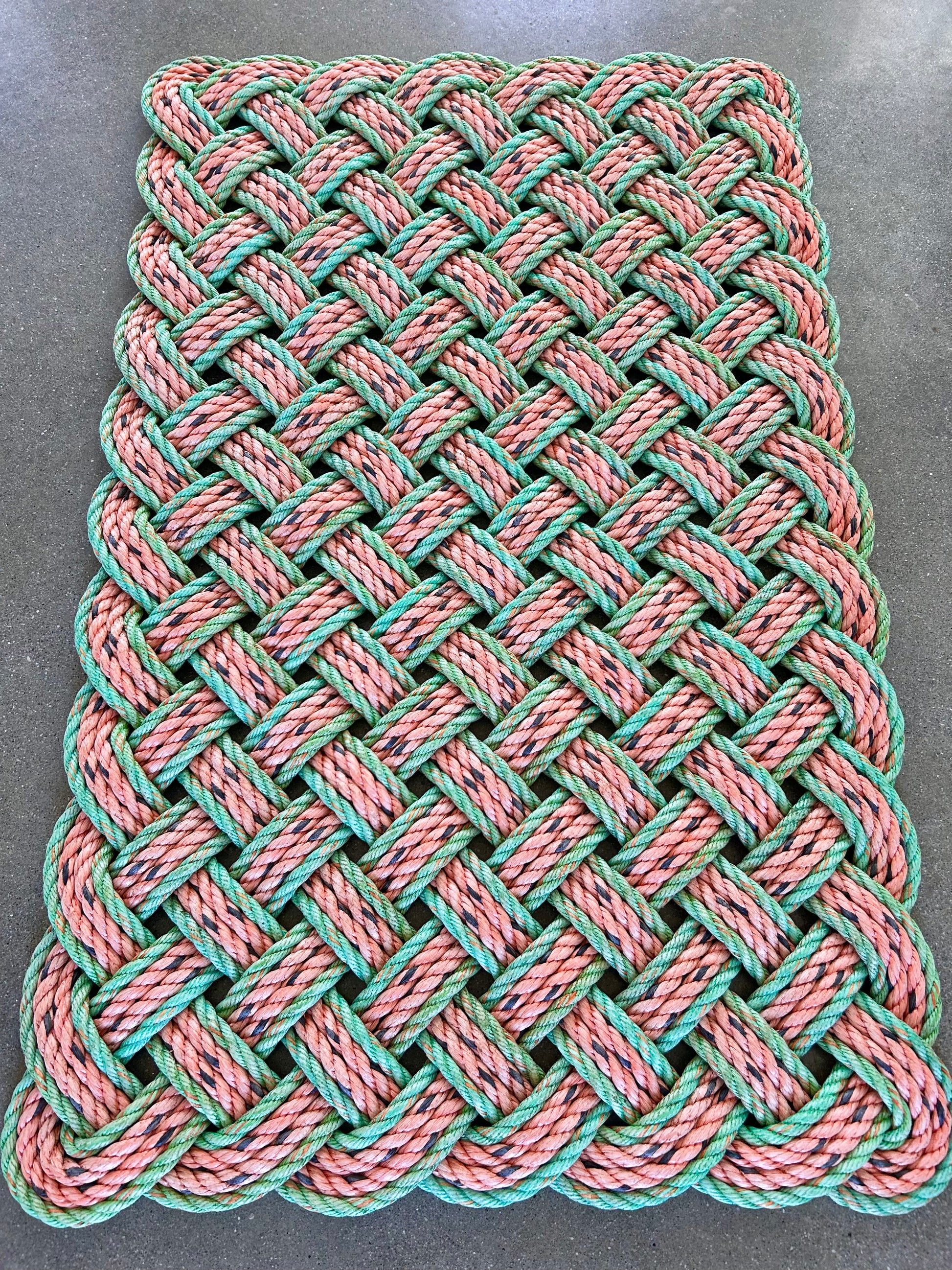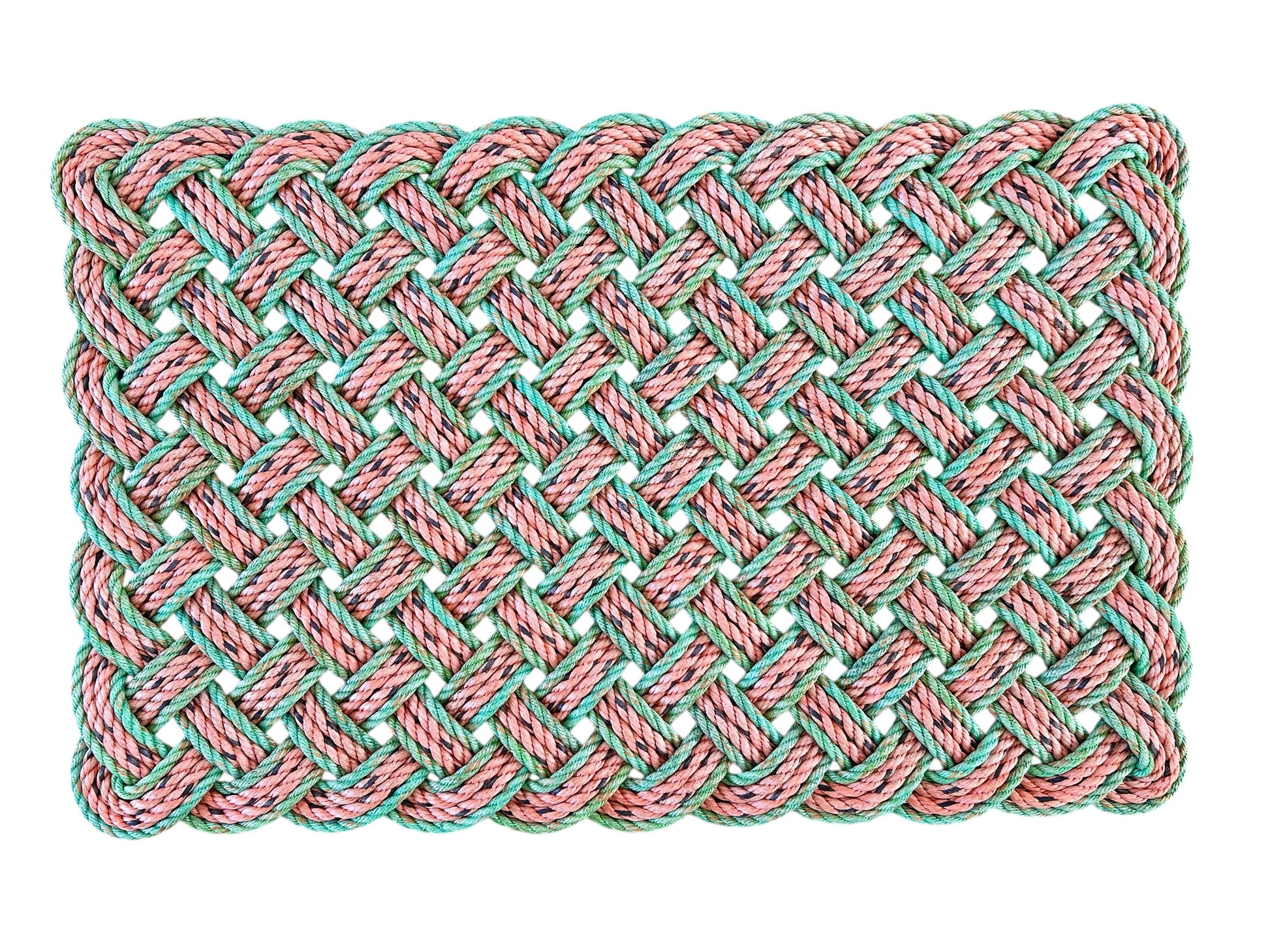 The rose gold and green colors make this a perfect beach house rope doormat. Add a little pop of Spring to your door.