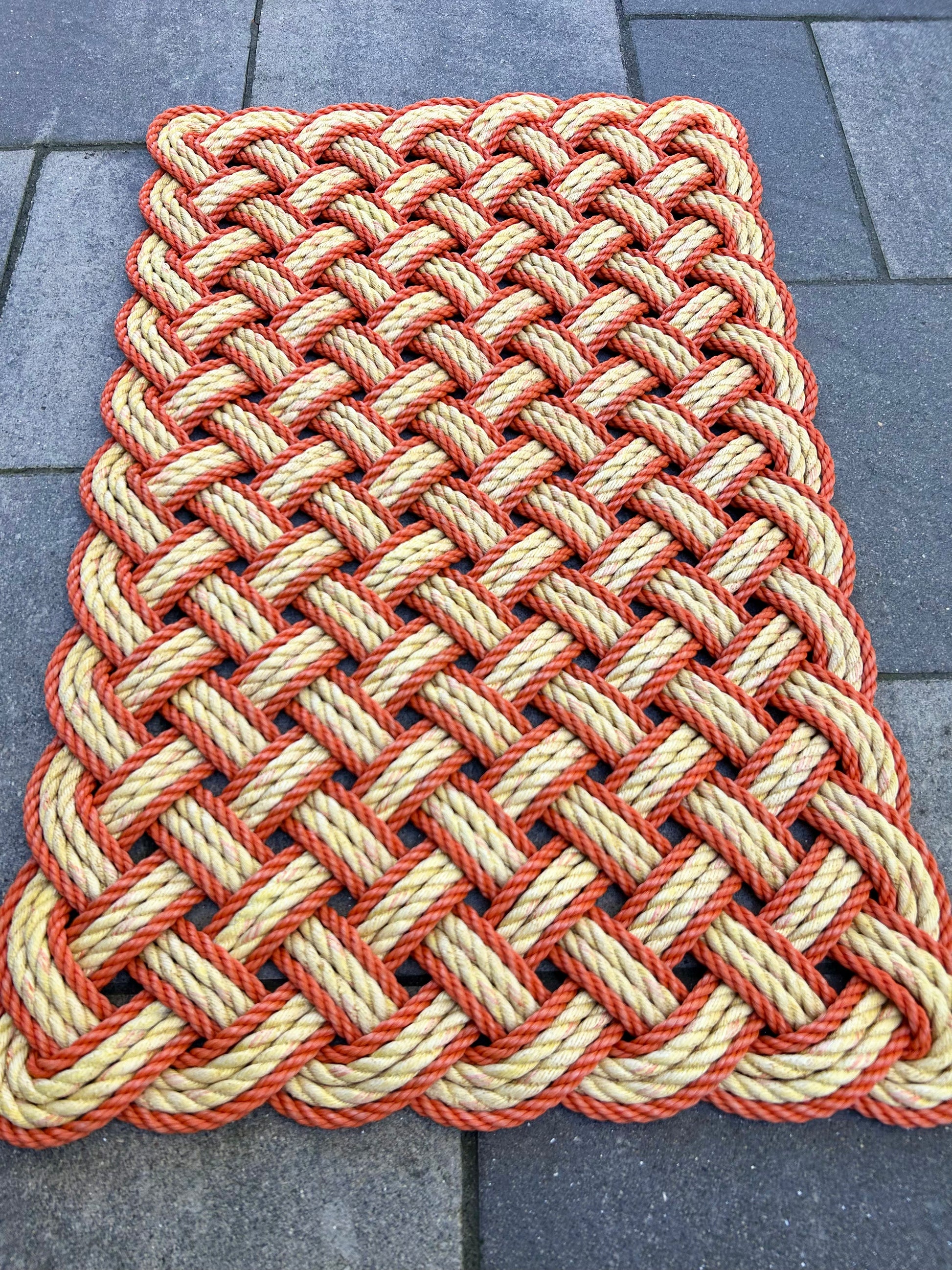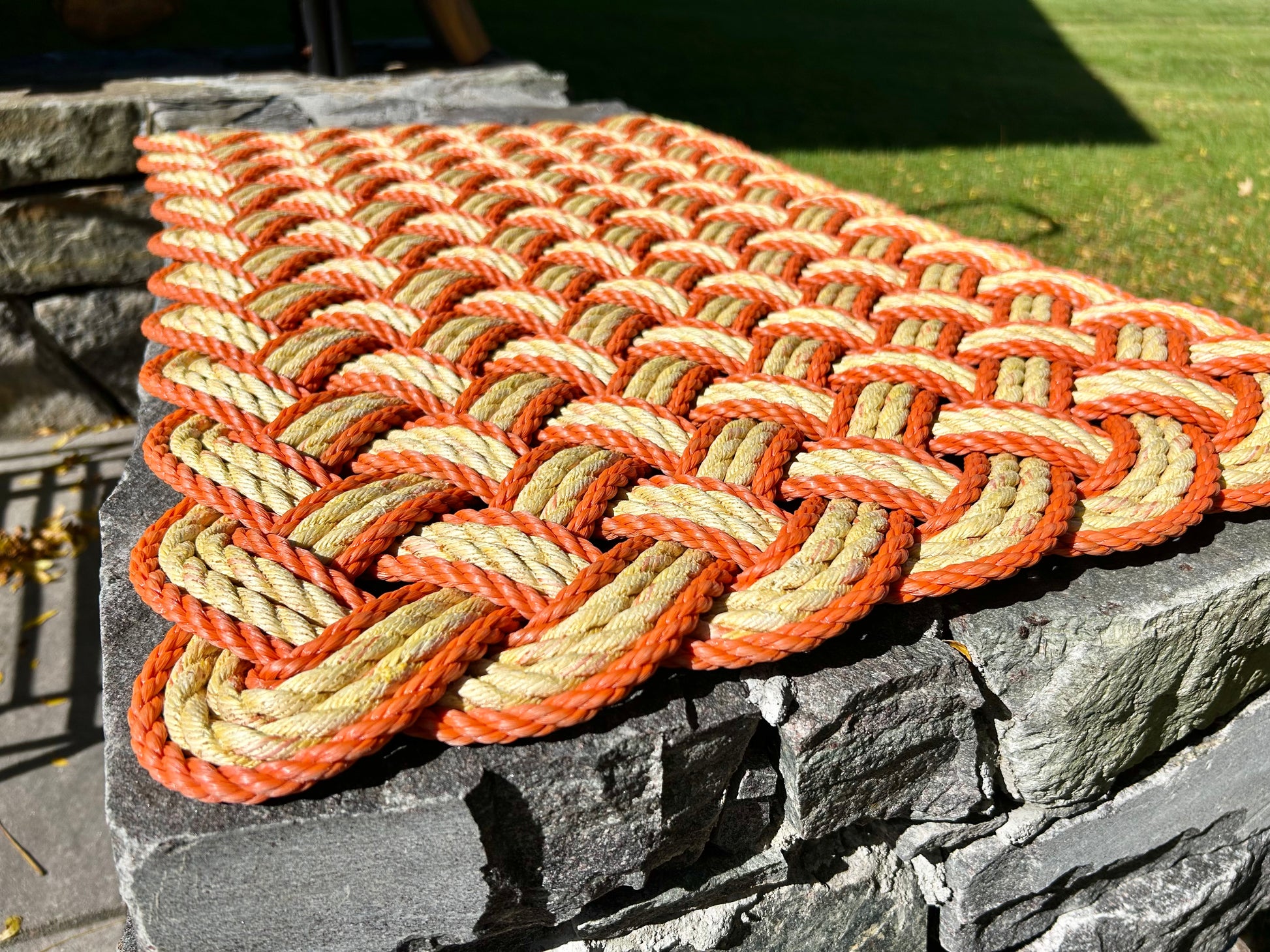 The crackle and pop of a bonfire can be felt in this doormat. Let this lobster rope doormat be the pop of color at your door, no matches required.