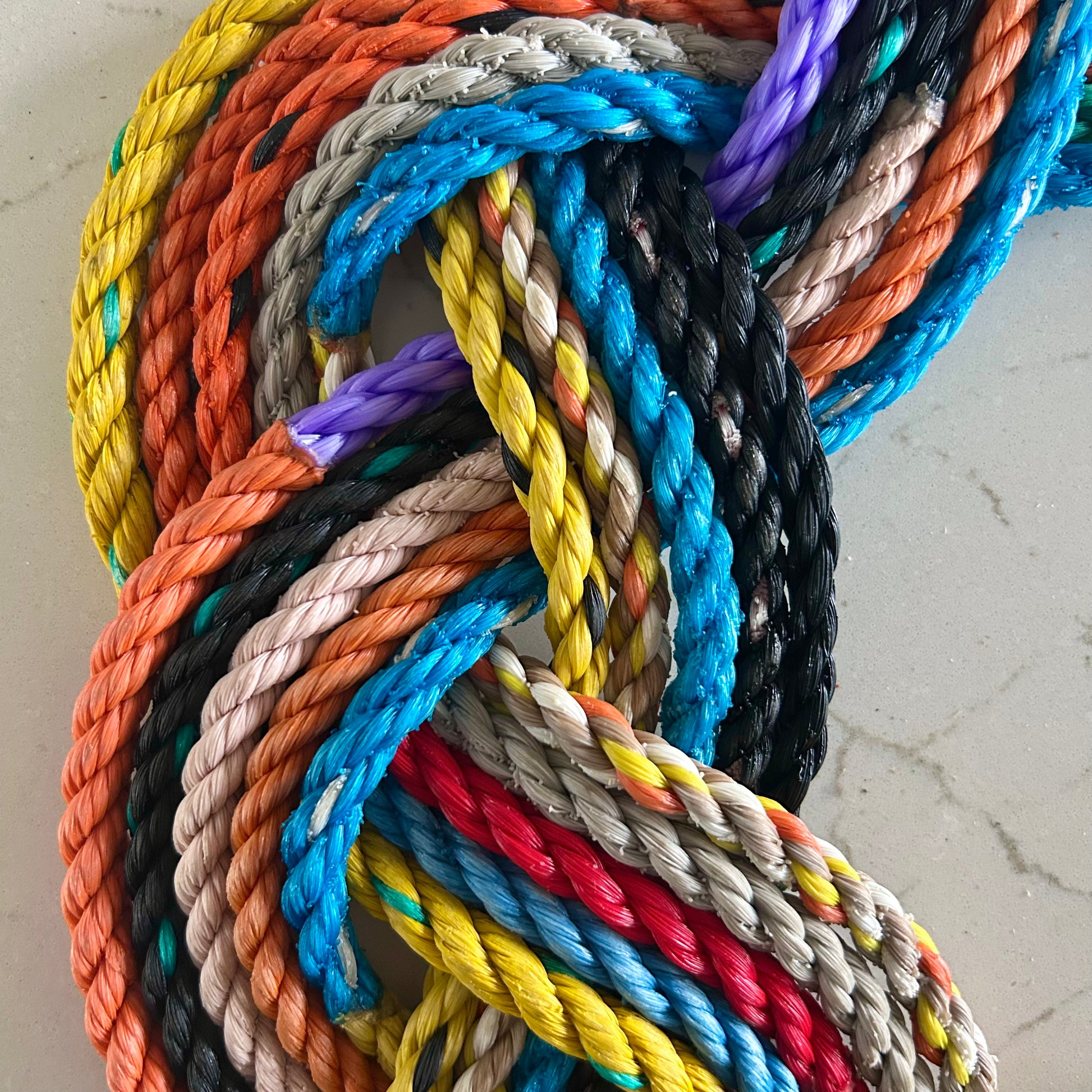 Handmade in Freeport, Maine using 100% reclaimed lobster rope, and metal fasteners.
