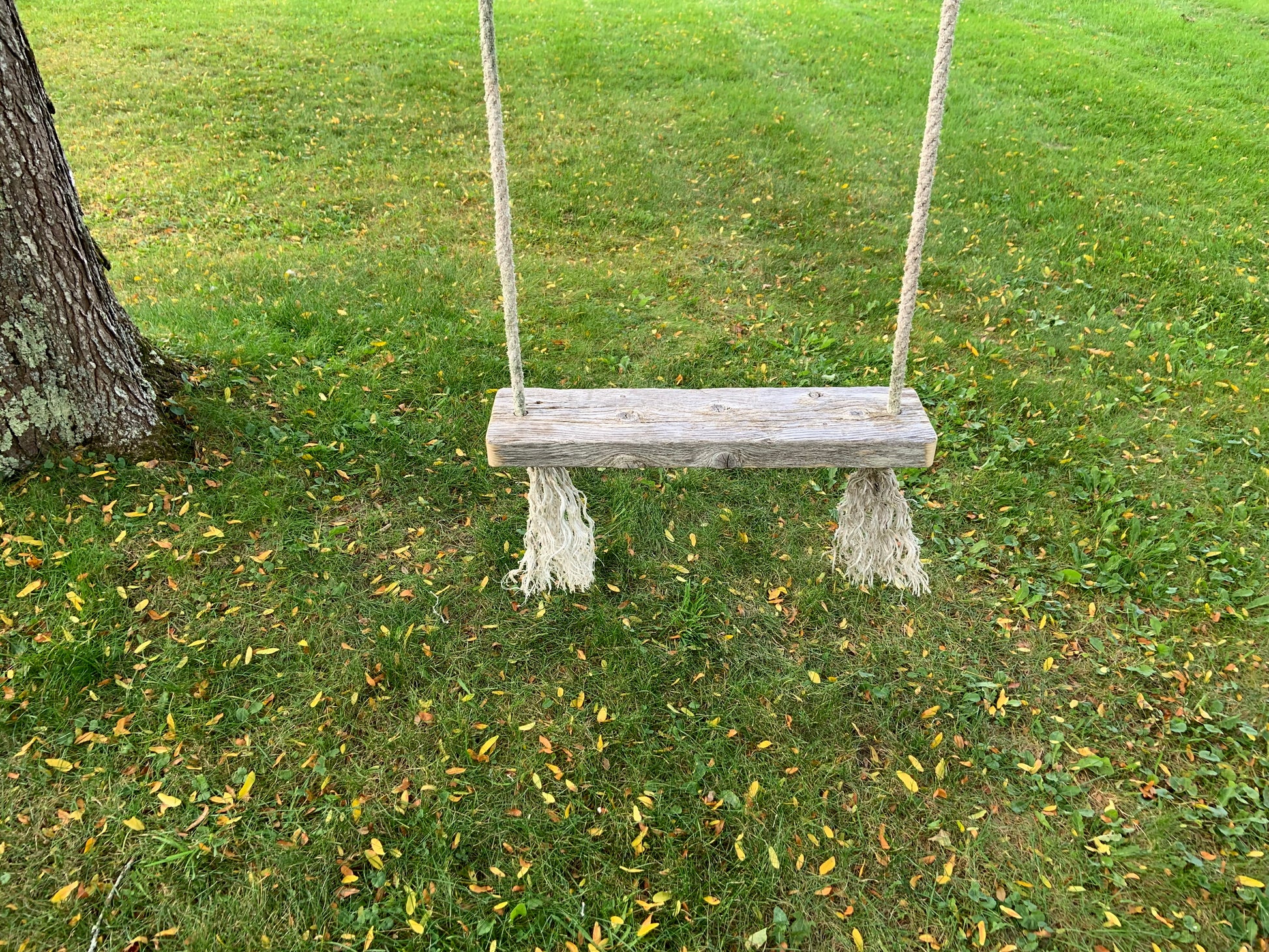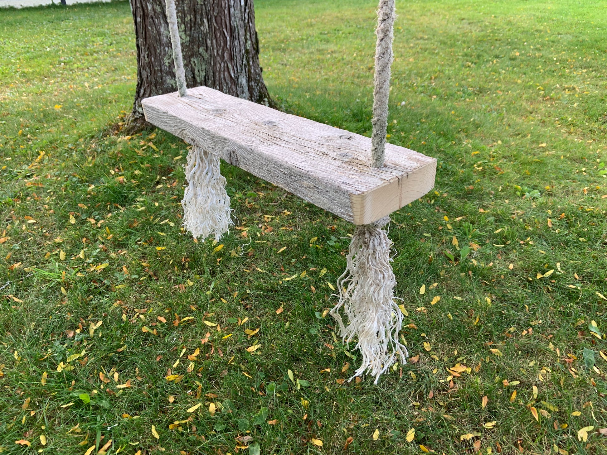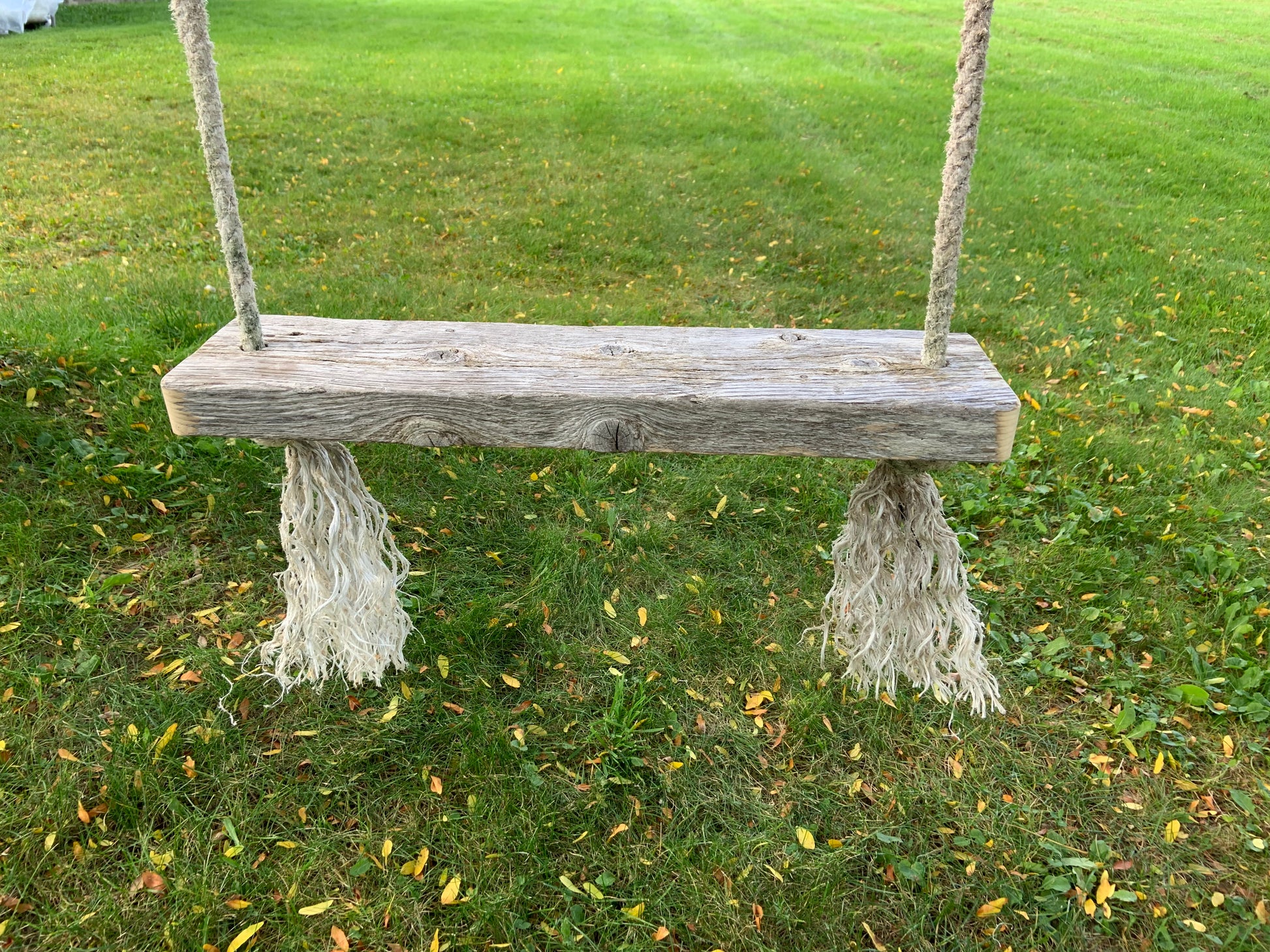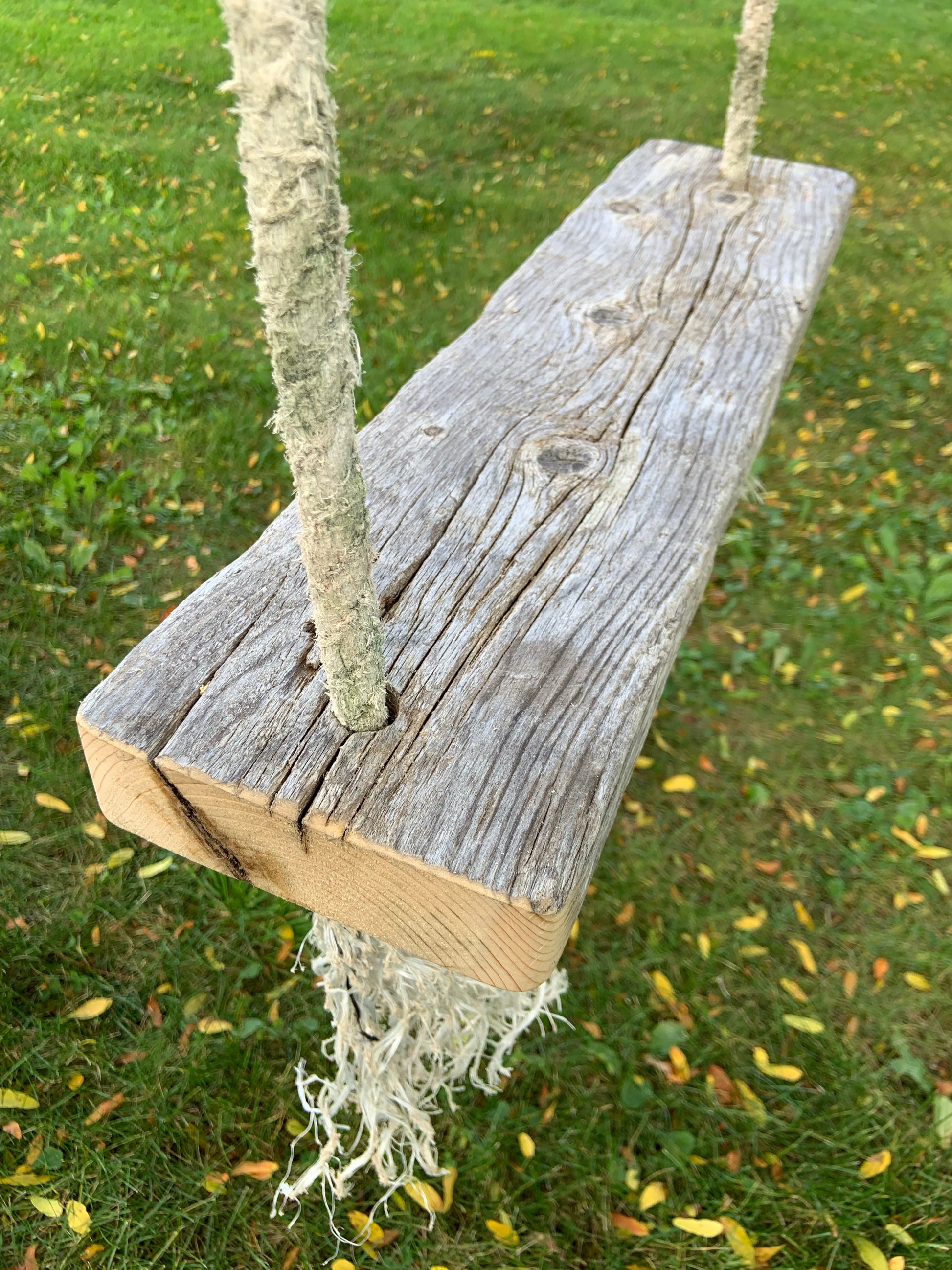 Weeee!! Tickle the sky with your toes. A nautical swing made with 3/4" rope and a driftwood seat.