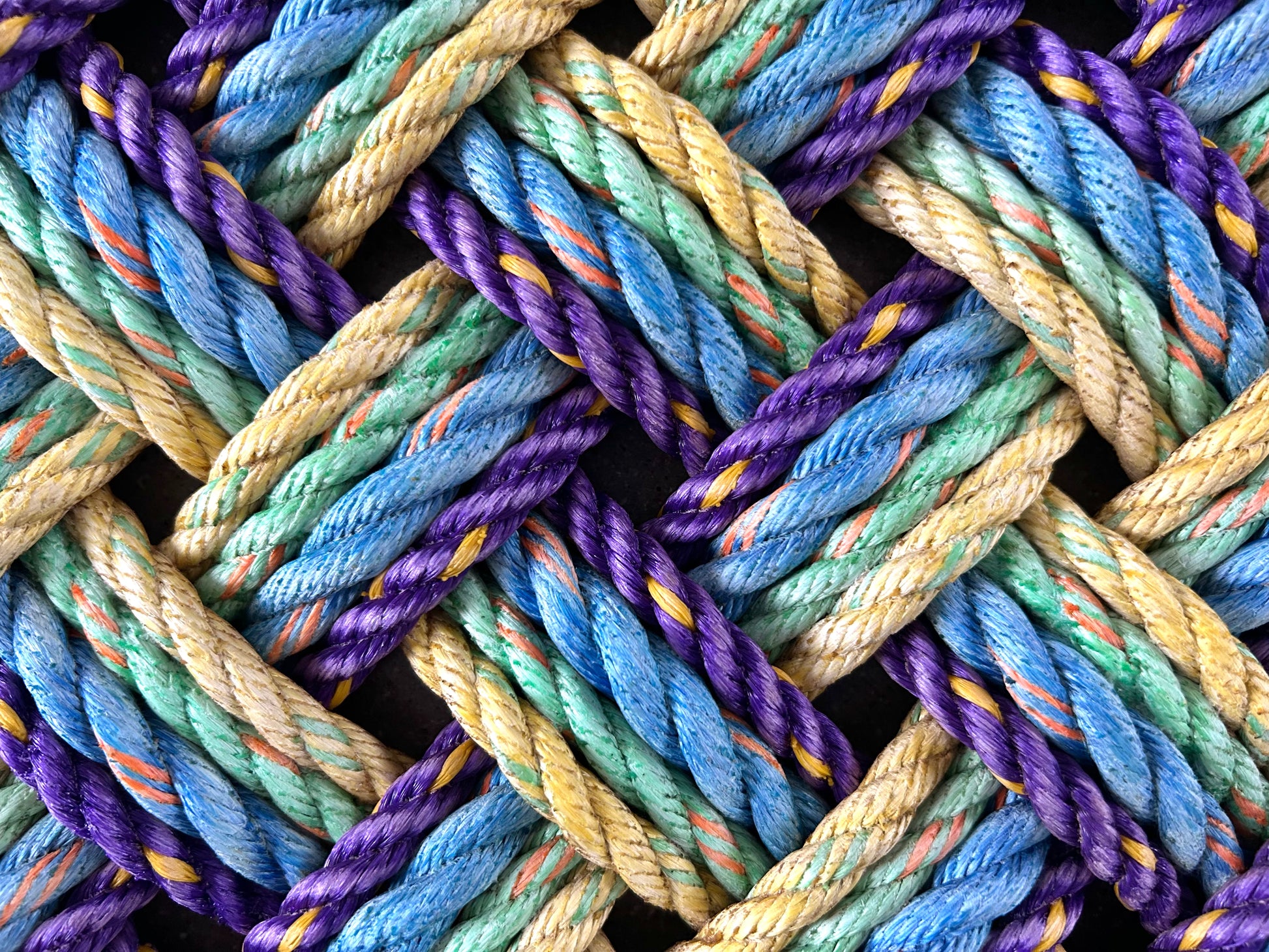 The upcycled rope is durable and can withstand the outdoor elements however prolonged and direct exposure to the UV light will cause fading.