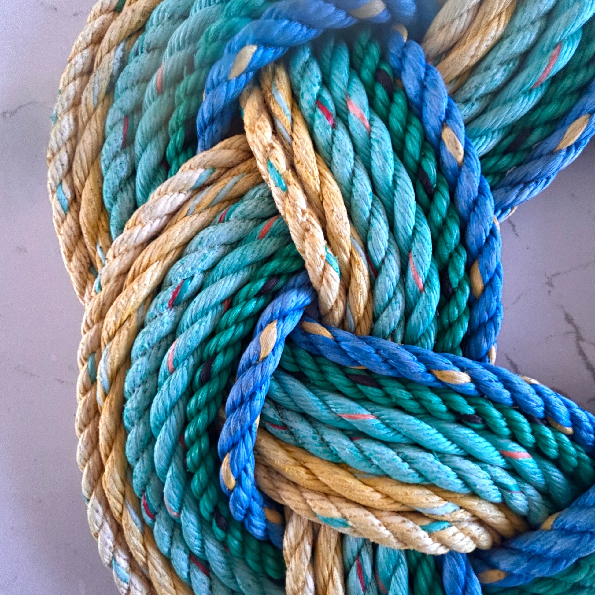 Handmade in Freeport, Maine using 100% reclaimed lobster rope, and metal fasteners.