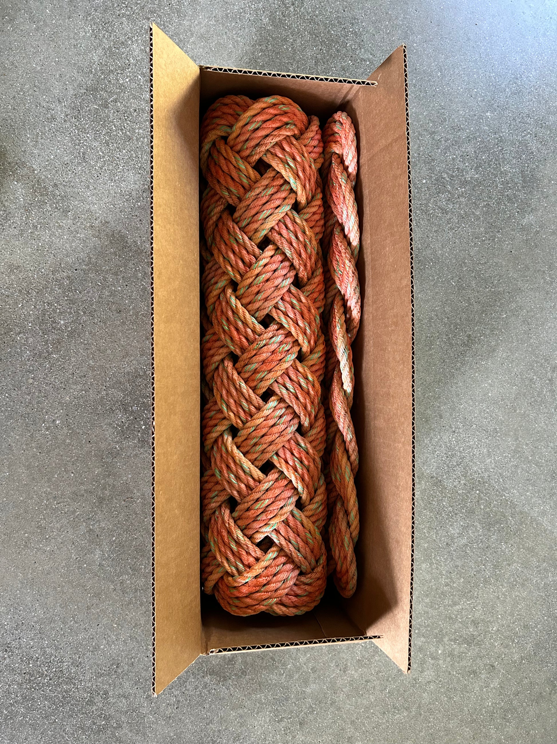 Handmade in Freeport, Maine using only 100% reclaimed lobster rope.